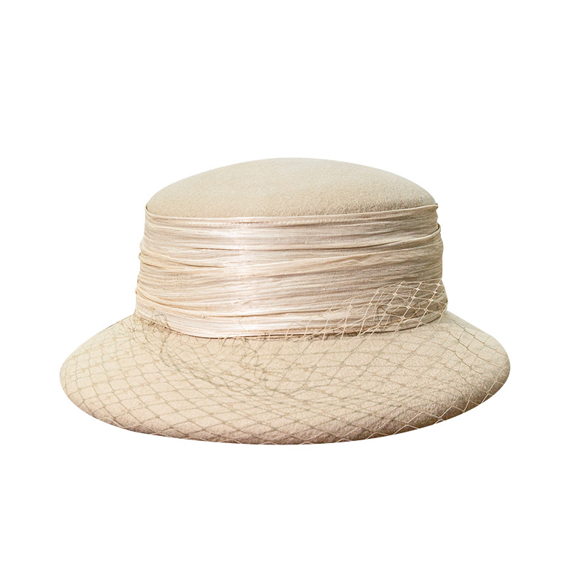 23秋冬新款羊毛氈帽女百搭優(yōu)雅圓頂網(wǎng)紗裝飾