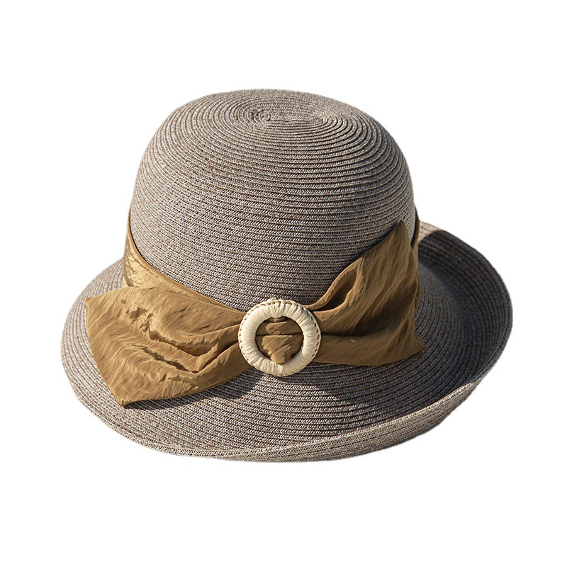 高端真絲麻草帽女可折疊遮陽帽卷邊沙灘帽夏天韓版百搭太陽帽批發(fā)