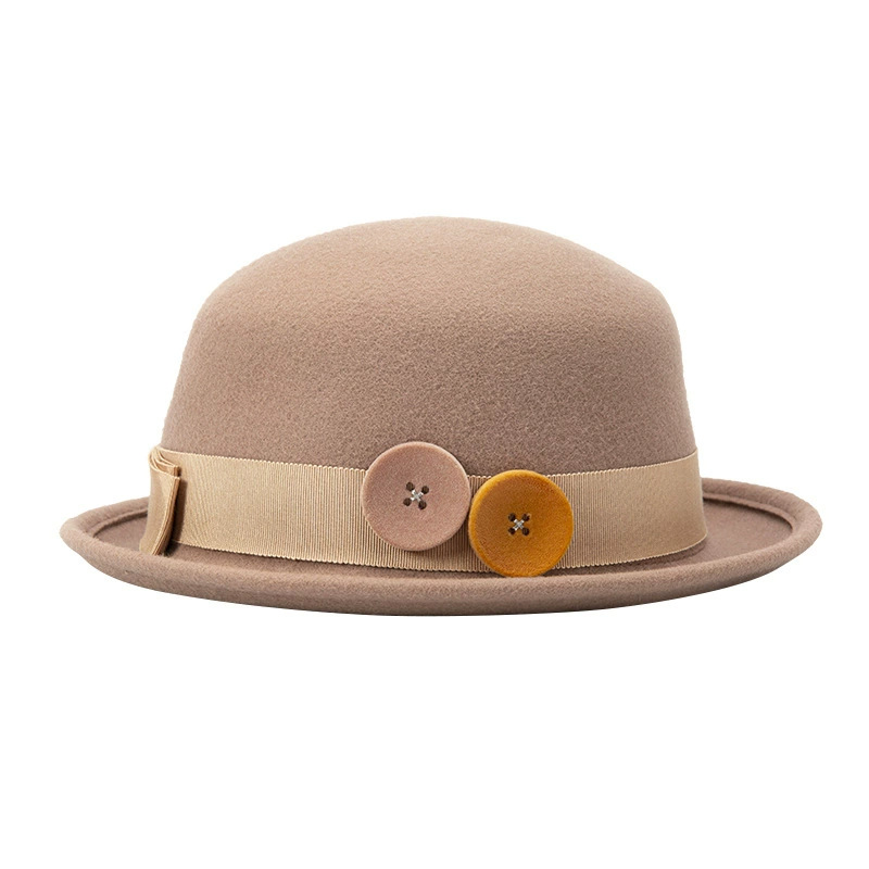 23秋冬新款羊毛氈帽盆帽女純色百搭優(yōu)雅圓頂保暖