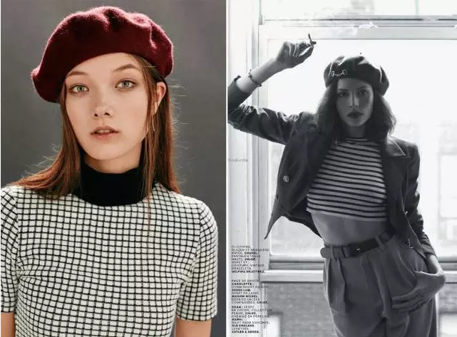 當(dāng)然,在二十世紀(jì)的歐洲,貝雷帽慢慢開始被女性所佩戴,因?yàn)椴煌馁|(zhì)不同顏色的區(qū)分,慢慢開始形成風(fēng)格,開始復(fù)古優(yōu)雅起來(lái)。