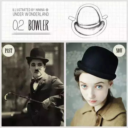 說到圓頂禮帽,最為iconic的代表人物當(dāng)然是卓別林!在1850年時(shí)由英國人詹姆斯·寇克發(fā)明,一路延燒到Hollywood去。當(dāng)時(shí)的倫敦,每個(gè)紳士都必須擁有,但因他是用特厚紙板壓印而成的硬頂帽,在穿戴與收納時(shí),都較為不方便,于是漸漸地,人手一頂?shù)默F(xiàn)象便在70年代漸漸沒落了。
