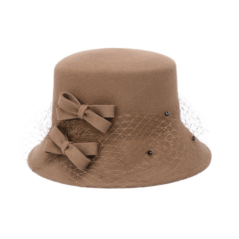 靈瓏2022新品秋冬英倫優(yōu)雅禮帽女名媛宴會羊毛盆帽復古麻紗蝴蝶結(jié)