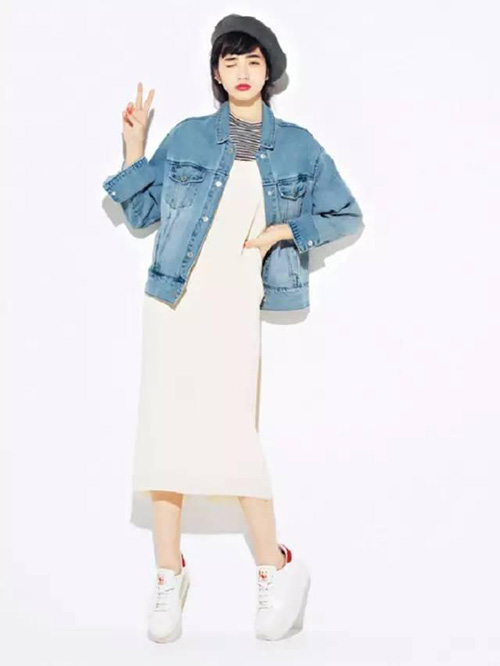 服裝上運(yùn)用了帥氣與甜美的混搭,相容性超好的貝雷帽能完美匹配這種混搭。