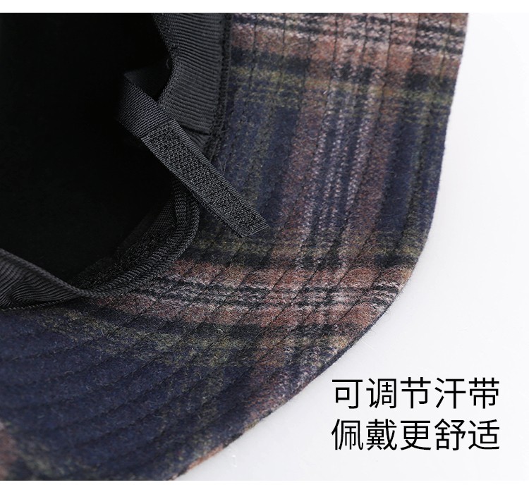 靈瓏小香風格子漁夫帽女秋冬百搭帽子潮 英倫復古皮帶扣遮陽盆帽